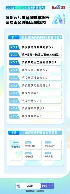 百度搜索联合中国教育在线发布《2025高考数据报告》,结合百亿搜索大数据,传递高考分数之外的数据洞察。