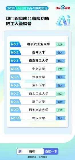 从热门搜索院校上看,南北高校势均力敌,考生依然向往名校,哈尔滨工业大学以及武汉大学等知名学府热度高。同时,与往年相比,宝藏大学热度飙升,生活相对舒适的非一线城市成为今年填报志愿的新趋势,苏州大学、西南大学、厦门大学等位于宜居城市的宝藏大学,凭特色的优势专业,登上全国热度高校前十。可见,发达的一线城市虽然就业机会多,薪资水平高,但是竞争太激烈,生活节奏快;而发展潜力更大的二三城市,却往往可以做到事业生活两不误。